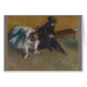 Esperando por Edgar Degas, pastel no papel c. 1882, é uma pintura de um jovem dançarino balé em tutu branco e um figurino de dança sentado nos bastidores de um banco ao lado de uma velha senhora em um vestido preto e que segurava um guarda-chuva. A bailarina se inclina para a frente para tocar o tornozelo, esticando e preparando-se para sua atuação como professora ou acompanhante que segue com toda a firmeza. Degas cuidadosamente constrói a composição inclinada para aparecer como uma fatia recortada da vida, como uma fotografia. O artista explora mestamente o meio pastel para criar a forma e a cor em uma variedade de traços e texturas, de áreas achatadas suavemente a escotilhas complexas e detalhes expressivamente modelados de figuras e figurinos. Como nas pinturas a óleo de Degas, o pintor também utiliza um cheio de valores tonais, desde os brilhantes brancos da fantasia do balé aos negros profundos e veludos do vestido e da fantasia da velha, com sotaques ousados de cores brilhantes e contrastantes que amarram a artista ao coração do movimento impressionista. Edgar Degas (Hilaire-Germain-Edgar Degas, 1834-1917) era pintor francês, desenhador, escultor, cineasta, fundador da escola de Impressionismo e pintor clássico de dançarinos e cenas da vida moderna. Degas começou a pintar cedo na vida, e depois de conhecer o clássico francês J.A.D. Ingres, Degas estudou desenho como Ingres na Ecole des Beaux-Arts sob Louis Lamothe. Degas morou por 3 anos na Itália, onde fez muitas cópias depois de Michelangelo e dos mestrados do Renascimento Italiano. Estabelecendo seu estúdio em Paris, o artista exibiu-se como pintor de história, mas começou a se voltar para matéria da vida contemporânea, sob a influência de seu amigo Edouard Manet. Privado do Salão oficial de Paris, Degas se juntou ao grupo Impressionista independente e exibiu em seu primeiro show, em 1874, embora sua abordagem clássica, falta de espontaneidade e desdém da pintura do cavalete ao ar livre o deixassem pouco em comum com boa parte do grupo. Degas pintou muitos retratos com profunda percepção psicológica, muitas cenas da vida contemporânea e pinturas de gênero, e dedicou metade de sua vida a quadros coloridos de dançarinas balés e figuras clássicas femininas. Os ousados experimentos de cor de Degas que atravessaram fronteiras entre o Realismo, o Impressionismo e a pintura Moderna, seus métodos originais de composição, e seu desenho clássico minucioso, calculado combinado com a rejeição melancólica de regras rígidas pelo artista, combinado para criar um dos mais originais e amados corpos de obras da história da arte.