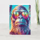 Engraçado cartão de aniversário Bigfoot. Legal Sasquatch estilando na floresta com uma árvore de pinheiros e arte ai.