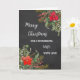 Feliz Natal para o cartão de esposa em poinsettias rústicas de aquarelas e folhagem e fundo de chalkboard.