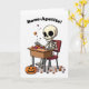 Um design caprichoso de Halloween para qualquer pessoa, apresentando um esqueleto cercado por doces com uma abóbora iluminada por perto. O trocadilho “Bom apetite ósseo!” torna esse cartão uma maneira divertida de compartilhar a diversão do Halloween com amigos, familiares ou qualquer pessoa que goste de uma risada leve na temporada.