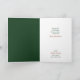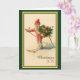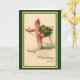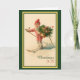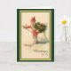 A frente deste cartão de saudação de Natal apresenta uma bela imagem de vintage de uma criança francesa esquiando a neve para entregar um buquê de Natal. O texto correspondente diz "JOY Natal". A imagem fica bordada em verde-escuro com um quadro dourado e verde. O dentro da placa tem o plano de fundo verde correspondente à esquerda. O outro lado é branco, com campos de texto personalizados. Celebre o Natal à moda antiga com este belo cartão, e faça-o dizer o que quiser.