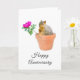 Um esquilo numa floreira segura uma rosa magenta nesta doce carta de aniversário.