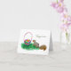 Um pequeno esquilo encontra uma cesta de cheio de ovos coloridos neste cartão de Páscoa doce.