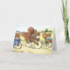 Adorável trabalho de arte de colheita mostrando uma família de esquilos andando de bicicleta.