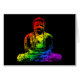 Um gráfico estilizado de uma estátua buda em cores arco-íris.