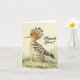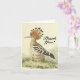 A frente deste obrigado de estilo vintage que você saúda o design de cartão apresenta a mensagem apreciativa "Obrigado!" em script como texto, juntamente com uma representação de um pássaro que está em pé. O dentro apresenta uma mensagem personalizada de obrigados. Um cartão de boas-vindas como este poderia ser usado para expressar apreço por algo especial que alguém fez.