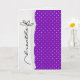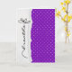 púrpura com padrão de bolinhas branca com texto de margarida para suporte
