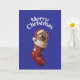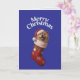 Um Chow vestindo um chapéu de Papai Noel está saindo de um empilhamento de Natal.