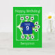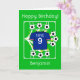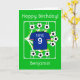 Envie cumprimentos de aniversário ao seu astro do futebol! Um cartão de aniversário temático de futebol totalmente personalizável, apresentando uma camisa de futebol azul escura nas cores da Escócia, sobre um campo com bolas de futebol chutadas em todas as direções, com estrelas douradas. Personalize os cumprimentos de aniversário; o número escrito que pode ser substituído por um apelido; o número que aqui representa a idade, bem como o nome que pode ser adaptado para o nome de um clube de futebol favorito! Diversão brilhante, alegre e positiva de futebol para o fã de futebol/esportes!