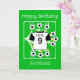 Envie cumprimentos de aniversário ao seu astro do futebol! Um cartão de aniversário totalmente personalizável com tema de futebol, apresentando uma camisa de futebol branca, com mangas pretas, nas cores do Fulham de Londres, sobre um campo com bolas de futebol chutadas em todas as direções, com estrelas douradas. Personalize a mensagem de aniversário; o número escrito que pode ser substituído por um apelido; o número que aqui representa a idade, bem como o nome que pode ser adaptado para o nome de um clube de futebol favorito! Diversão brilhante, alegre e positiva de futebol para o fã de futebol/esportes!