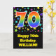A parte dianteira destes excitação, divertimento, e características que de design vibrantes do cartão do aniversário um teste padrão da estrela colorida dá forma, junto com o número "70" tendo arco-íris colorido um teste padrão inspirado do inclinação do espectro, em um fundo colorido preto. A parte dianteira igualmente caracteriza uma mensagem do cumprimento do aniversário, incluindo um nome destinatário feito sob encomenda. As características internas uma mensagem personalizada do cumprimento do aniversário, ou poderiam talvez ser canceladas e sairiam do vazio se uma mensagem deve ser escrita à mão pelo contrário. Um cartão de aniversário personalizado como este pôde ser uma maneira do divertimento de reconhecer alguém seventieth aniversário. [~Z0000348]