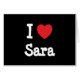 Eu amo Sara! t-shirts com o nome personalizado; Mostre o quanto você ama Sara com essas camisetas personalizadas e o namorada da Sara namorado, marido ou mulher, aniversário, chás de fraldas de noiva, camisetas de noiva, botões, camisetas e ímãs!