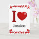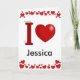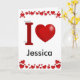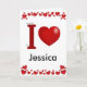 Cartão do dia dos namorados com Eu coração em letras vermelhas 3D e espaço para o nome de sua escolha. Personalize o interior com seu próprio texto.