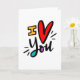 O cartão é brilhante e atraente. Não diz apenas que eu amo você, mas diz com muita cor e entusiasmo.
