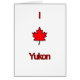 Uma variação no tema I Heart. A imagem usa uma folha de mapa canadense no lugar do símbolo cardíaco normal. Este design diz "I (folha de mapa canadense) Yukon. A inscrição e o símbolo folha são vermelhos, com uma borda preta ou um traço. Isso faz um presente excelente para qualquer um que seja canadense orgulhoso e residente da Terra do Sol da Meia-Noite.