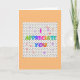 Eu aprecio VOCÊ design Tamanho: Padrão, 5" x 7" Obrigado, olá, ou eu te amo, cartões de saudação personalizados são presentes pensativos que são sempre a maneira perfeita de se expressar. Dimensões: 5" x 7" (retrato); processo de impressão de cor de Cheio CMYK de 7" x 5" (paisagem) de 7" para impressão frente e verso duplo sem custo adicional Tipo de papel: Matte A clássico, em volta de papel com uma sensação natural e um acabamento de mate não revestido; nosso Matte Padrão é o teste do tempo. Elegante e subestimado, cores impressão mais suaves e mais sutis. Espessura de 17,5 pt / peso de 120 lb / acabamento branco claro, não revestido, com uma textura de casca de ovo é fácil de escrever e não borra Made e impresso nos EUA
