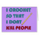 Uma língua no slogan do mordente "que eu crochet de modo que eu não mate pessoas com um gancho de crochet dos desenhos animados.