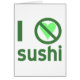 Eu odeio sushi. Design engraçado usa letras verdes, um coração verde e o sinal internacional "NÃO" para ler "Eu odeio sushi". Para aqueles que não "amam" isso.