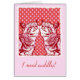A parte dianteira do cartão lê: Eu preciso afagos. Dentro de lê: E eu quero-os de você.