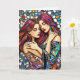 Cartão LGBT só para dizer que te amo. Duas belas mulheres se abraçando no amor. Azulejos de mosaicos brilhantes e coloridos, ilustração de arte ai.