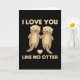 Amo-te como ninguém. Um ditado engraçado com duas lontras e que se amam. As lontras estão apaixonadas por um coração.