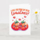 Aperte o dia e expresse o seu amor com o nosso Eu Amo-te do Meu Cartão de Tomates de Cabeça, uma mistura madura de afeto, calor, e uma mistura de humor suculento. Esta carta está repleta de emoções, apresentando dois tomate kawaii bonitinhos se abraçando tão fortemente que quase se pode ver o amor sendo esmagado, acompanhado por uma aspersão de corações vermelhos para simbolizar a profundidade de sua afeição. A frente da carta diz brincalhão "Eu te amo de meus tomates-cabeça" em um texto vermelho vibrante, misturando um trocadilho que é charmoso e sentido. Ideal para Dia de os namorados, aniversários, ou apenas para compartilhar um momento de riso sincero, o dentro da carta oferece um espaço para sua mensagem vermelha personalizada, permitindo que você semeie seus sentimentos em suas palavras ricas e saborosas. Que este cartão branco seja a sua maneira de dizer que seu amor é tão maduro, tão suculento, e tão maravilhosamente intenso quanto o tomate vermelho mais profundo, provando que alguns sentimentos são deliciosamente profundos para serem contidos!