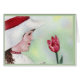Uma jovem garota de chapéu branco com banda vermelha oferecendo uma tulipa vermelha a uma pessoa que ela admira... Belo Cartão de Saudação de Aquarela como nenhum outro - um que você pode Enquadrar como um guardião. Felicite seus amigos ou família por aniversários, casamentos, graduações, namoradas, aposentadoria, vinda da idade, etc... Uma expressão da sua consideração e carinho. Aceite amizade e encorajamento.