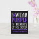 Cartão Eu Uso Roxo Em Memória Da Sobredose Da Minha Irmã