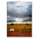 Brinquedo de playground de solitário completamente isolado em um cenário de saída de Arizona suja. As nuvens de tempestade mostram o sol se quebrando longe à distância. Uma das muitas cenas estranhas do sudoeste que se encontram nas estradas traseiras e nas autoestradas da Arizona.