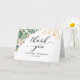 Este é um belo cartões de agradecimentos com flor de eucalipto e design de folhas de ouro.