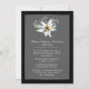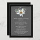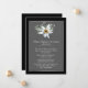 Um anúncio de morte em preto com gráficos de uma fina área de texto enquadrada em prata, decorada com um solteiro de flor branca de edelweiss, no topo. Personalize o texto branco para atender às suas necessidades. Pode ser usado como cartão de luto funerário também. Envelopes com linhas pretas correspondentes disponíveis.