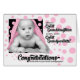 Uma fotografia adorável de uma menina de olhos verdes, cortesia de Vera Kratochvil, foi pintada e adicionada a esta design bonitinha de cor rosa e bolinhas correspondente para fazer a carta perfeita para cumprimentar os avós excelentes com seus parabéns no nascimento da neta Excelente deles.