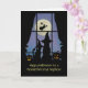 Ao seu excelente ou sobrinho! Uma forma querido de enviar os desejos de Feliz Halloween. Um cachorro e um gato bonitinho olhando pela janela na noite de Halloween quando uma bruxa passa.