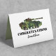 Um simples cartão de saudação de saída militar com um tanque de camuflagem do exército, a palavra "parabéns" e o nome do soldado.