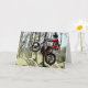 Um cartão de aniversário para fãs e competidores de julgamento de motocicletas com uma foto de ação posterizada de um piloto de motocicletas saltando de rocha para rocha.