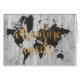 Um design bonitinho com uma frase de texto de ouro e um mapa negro do mundo sobre um fundo de cinza. Artista: Studio W