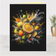 Brilhe o dia de alguém com este cartão ousado de saudação dos citros! Apresentando uma suculenta explosão de laranjas, limões e limões em um fundo preto impressionante, este design traz cor, energia e alegria a qualquer ocasião. Dentro de vazio para a esquerda para que você possa escrever sua própria mensagem sincera.