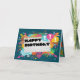 Um cartão de aniversário criativo com os gráficos vibrantes e coloridos.