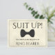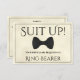 Este Cartão de Proposta de Toque Divertido é uma forma excelente de pedir a um sobrinho ou outra criança especial para ser o portador do anel no seu casamento. Possui um design bonitinho com um fundo marmoreado que se parece com papel fino, uma gravata preta de arco e o texto: Encaixe! Seus serviços são solicitados como Ring Bearer!