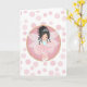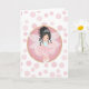 Este design apresenta uma fada de cabelo preto com vestido rosa, varinha mágica e asas, voando em um fundo super fofo de bolinhas rosa.
