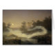 Uma bela imagem artística de várias fadas em névoa branca voando sobre a água. Paisagem com céu noturno e floresta como pano de fundo. Pintura por August Malmstom