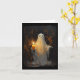 Cartão Fantasma Bonito Segurando Velas Diversão Halloween
