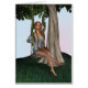 Renderização digital em 3D de uma linda garota com cabelo comprido vermelho no balanço da fantasia