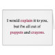 Produtos múltiplos com o comentário cómico "eu explicar-lheo-ia, mas eu sou todo fora dos fantoches e dos pastéis." neles.