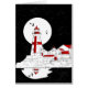 Uma ilustração a preto e branco do Farol de Cabeça Quadrada Oriental, também conhecido como Estação Leve de Cabeça Harbor à noite.