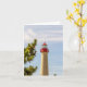 Lâmpada do Farol de Cape May nas costas da Baía de Delaware contra céus azuis com espaço para cópia.
