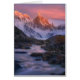 As águas Glaciated sob o alpenglow do nascer do sol iluminam-se em Cerro Torre, puncuated pela cor da queda.