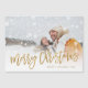 Cartões de Natal magnéticos impressos por barato com modelos simples para personalização. Este design na moda moderno apresenta um falso roteiro de folha de ouro Merry Christmas typografia sobreposta na sua foto de sangria de cheio. Personalize-o com suas fotos, nome da família, ano ou outro texto personalizado. Note que a folha de ouro falsa faz parte do design impresso - as cartas não têm folha metálica real. Use as ferramentas de design para alterar as fontes e cores do texto, adicionar mais fotos e criar uma única design de cartão com fotos de feriado.