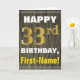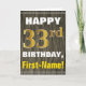Cartão Faux Wood, Faux Dourado 33º Aniversário + Nome