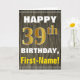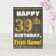 Cartão Faux Wood, Faux Dourado 39º Aniversário + Nome